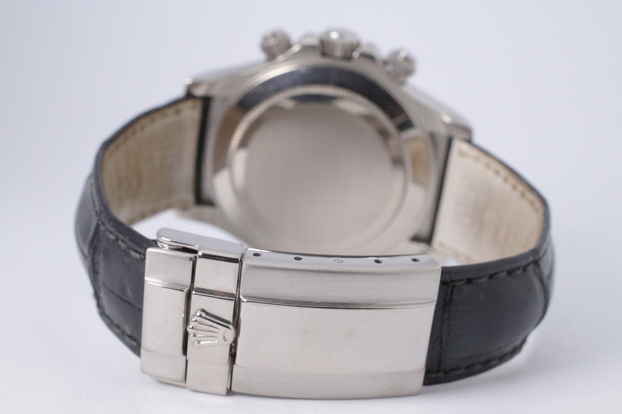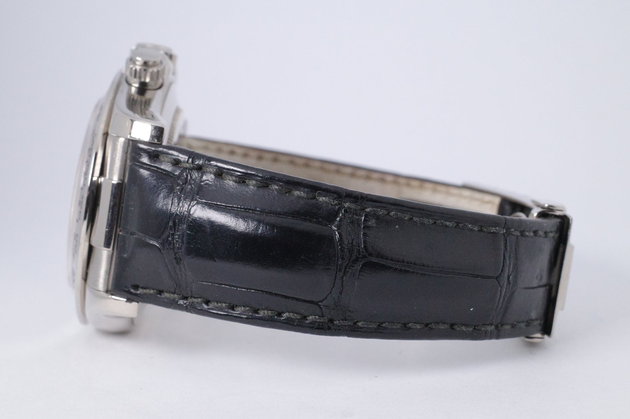 Strap: Black Alligator Strap, White Gold Deployment Buckle